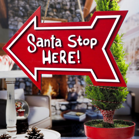 Santa Stop Here Hanging Sign